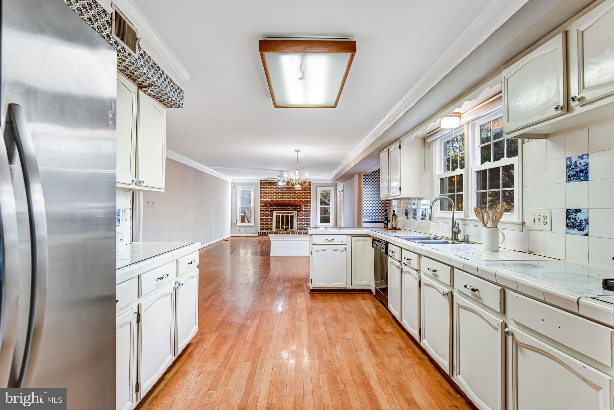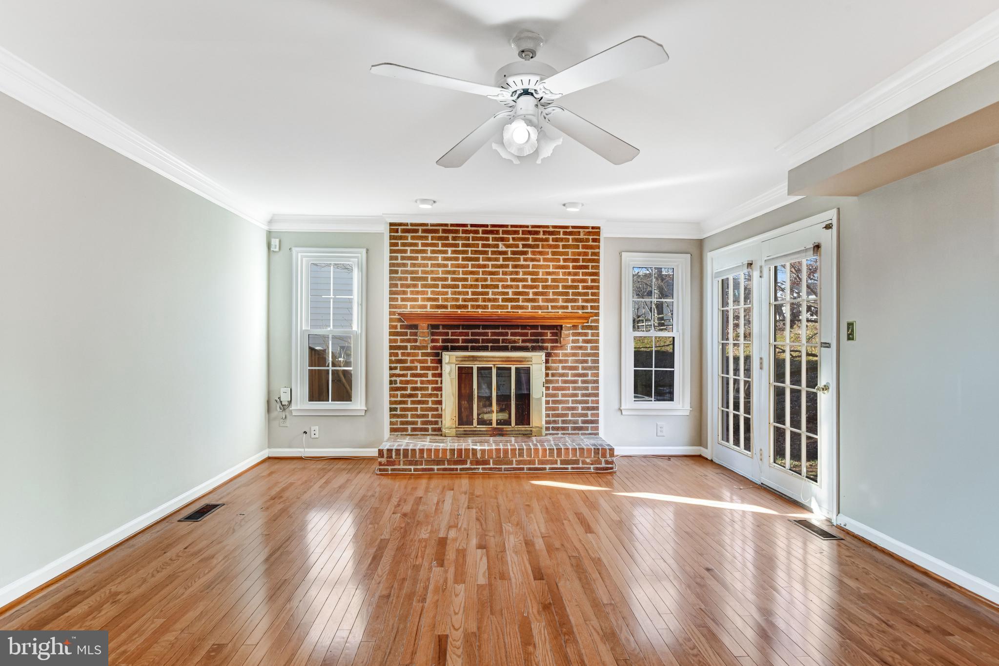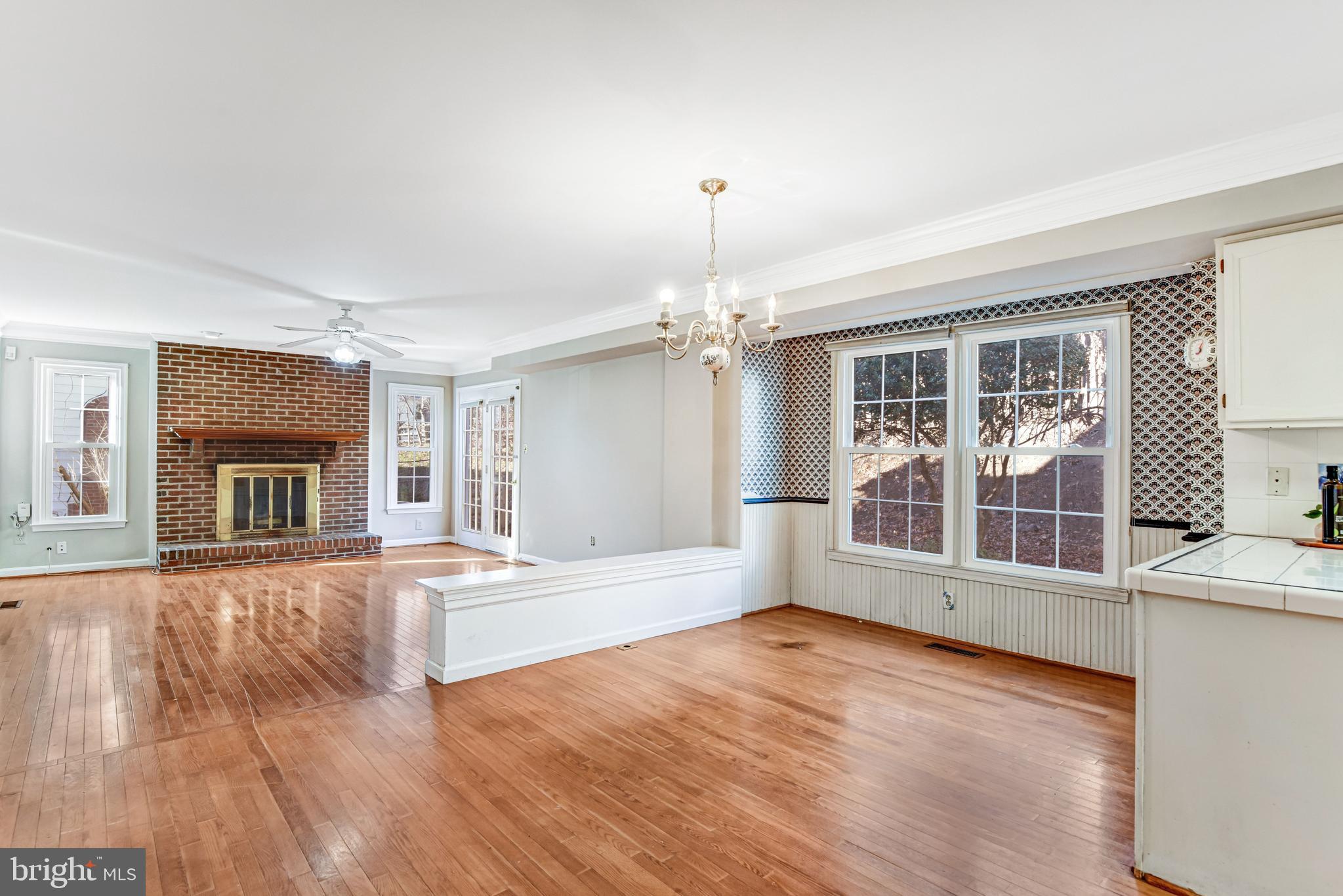 The main level features a two-story foyer, hardwood floors, crown molding, formal living and dining rooms, and a kitchen that is functional and ready for renovation, allowing the next owner to update to their own specifications. The kitchen opens to a breakfast nook and family room with fireplace.