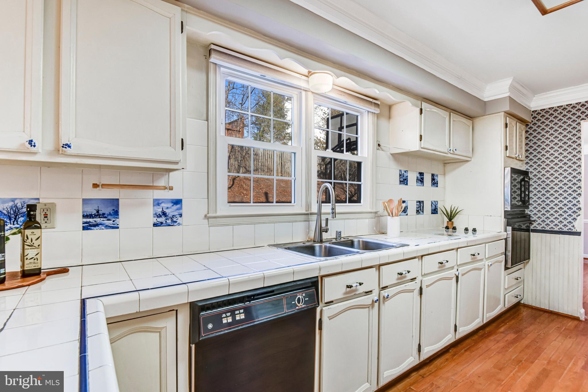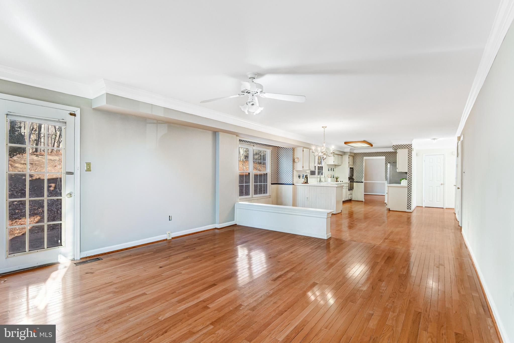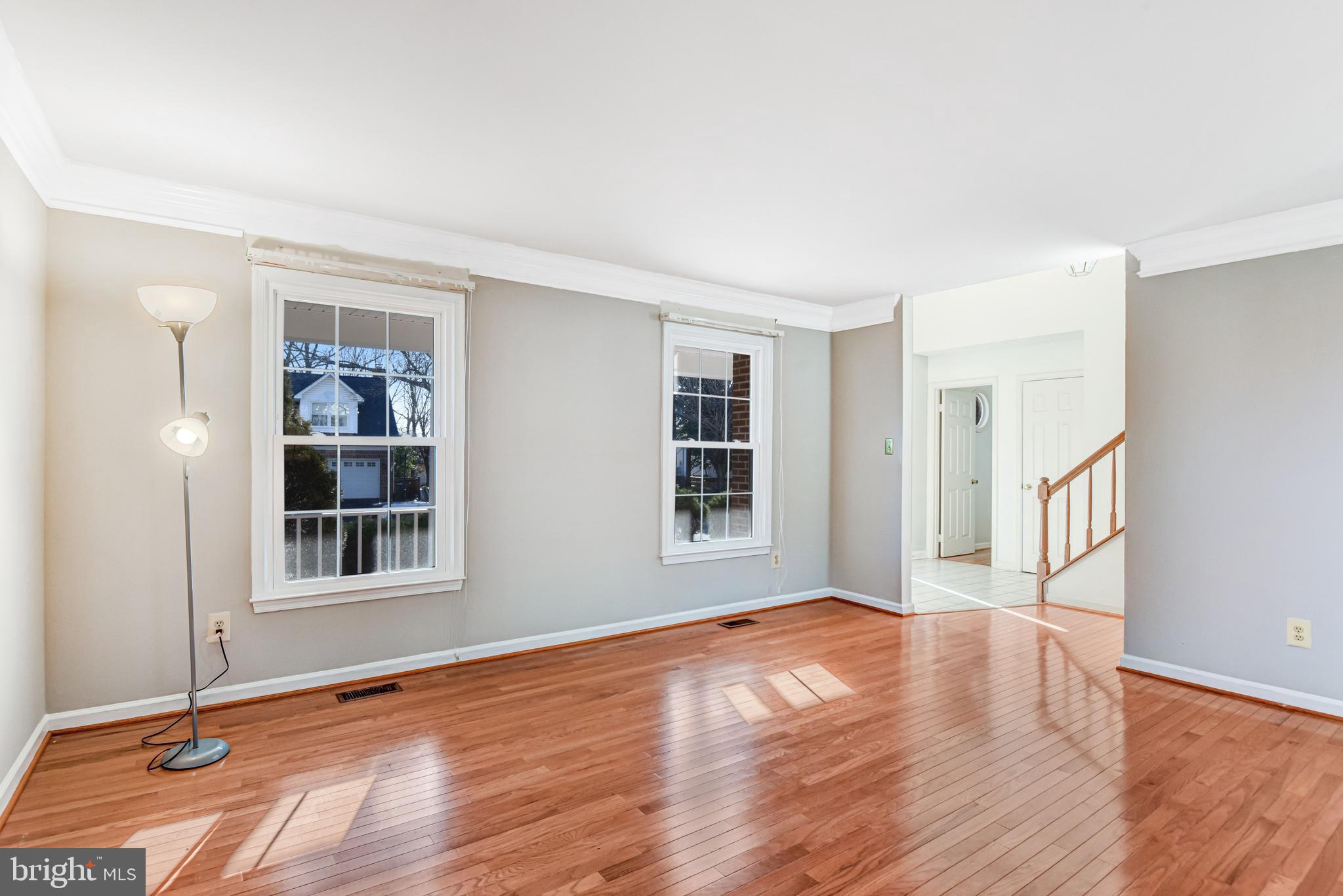 The main level features a two-story foyer, hardwood floors, crown molding, formal living and dining rooms, and a kitchen that is functional and ready for renovation, allowing the next owner to update to their own specifications. The kitchen opens to a breakfast nook and family room with fireplace.