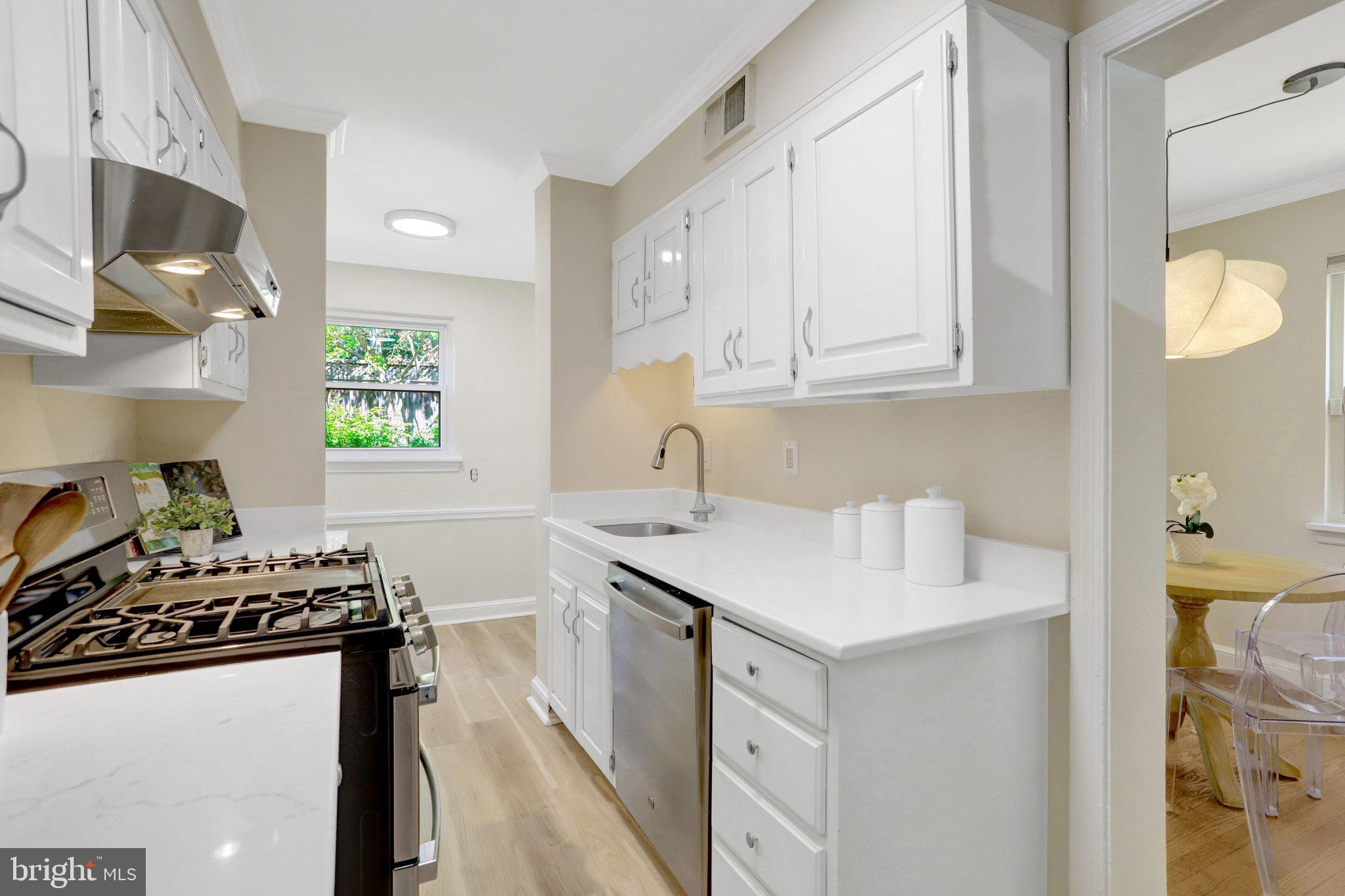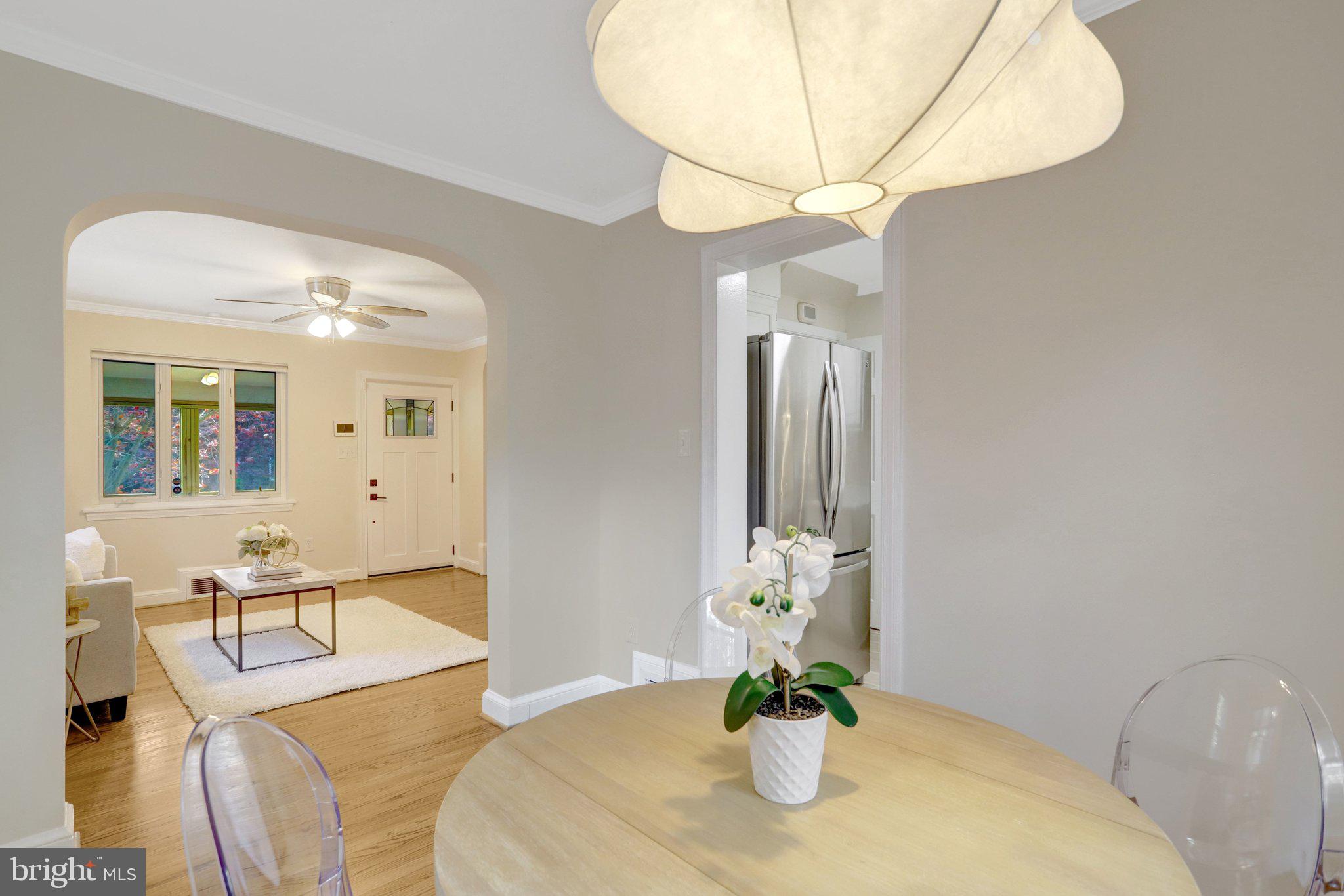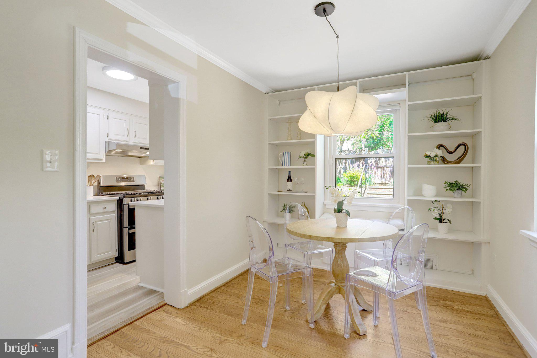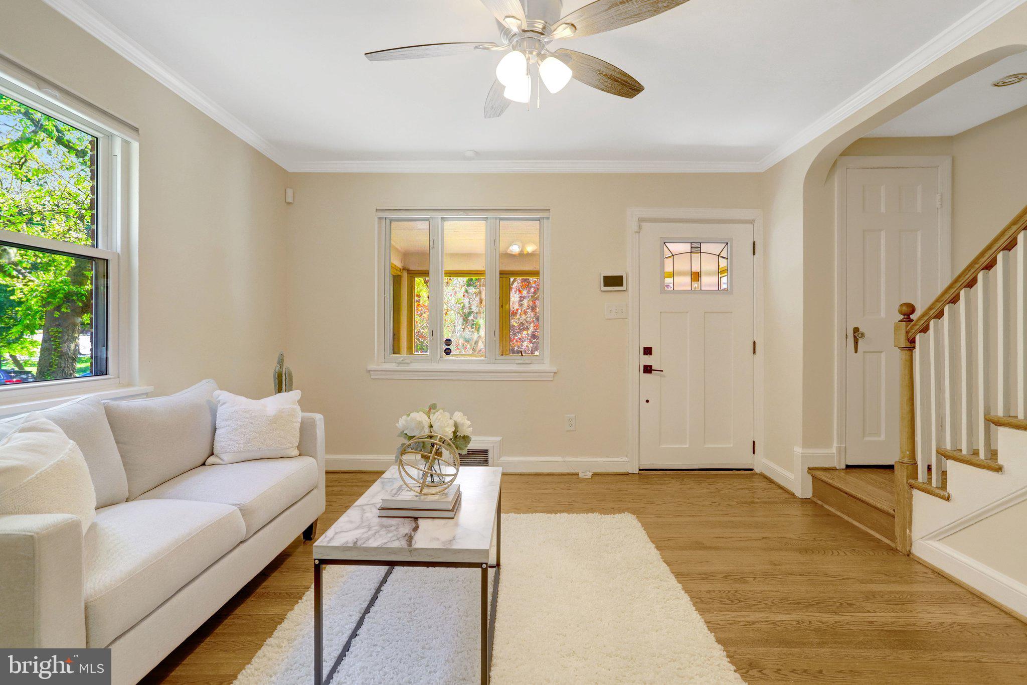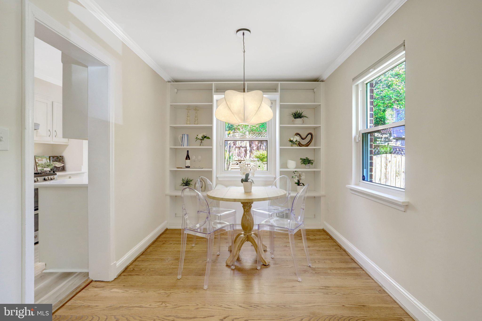 Step inside to find hardwood floors throughout the main and upper levels in like-new condition, paired with a timeless design that feels both warm and refreshed. The main level features a light-filled living space that flows seamlessly into the updated kitchen, complete with new quartz countertops, stainless steel appliances, and crisp white cabinetry, creating an ideal space for everyday living and entertaining. The dining room with built ins adds both charm and functionality, creating an ideal space for everyday living and entertaining.
