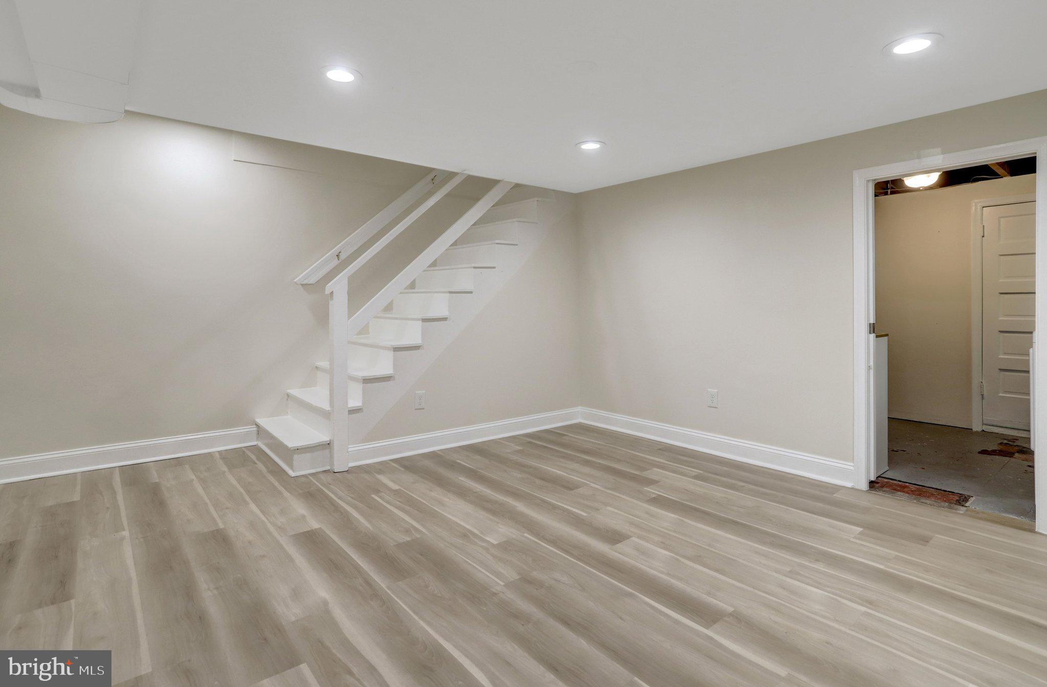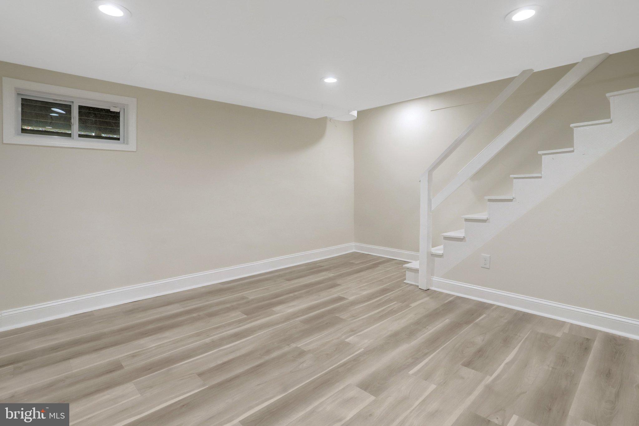 The finished lower level expands your living space with a large open area, new flooring, and walk-out access, offering flexibility for a recreation room, playroom, or additional entertaining space.