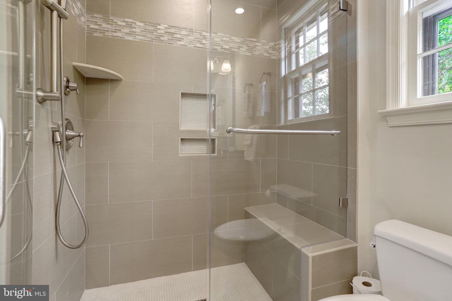 The upper level is anchored by a serene primary suite, complete with a generous walk-in closet and an elegantly updated en suite bath featuring dual vanities and a frameless glass shower. Three additional bedrooms and a beautifully appointed hallway bath offer versatility for family, guests, or a home office.