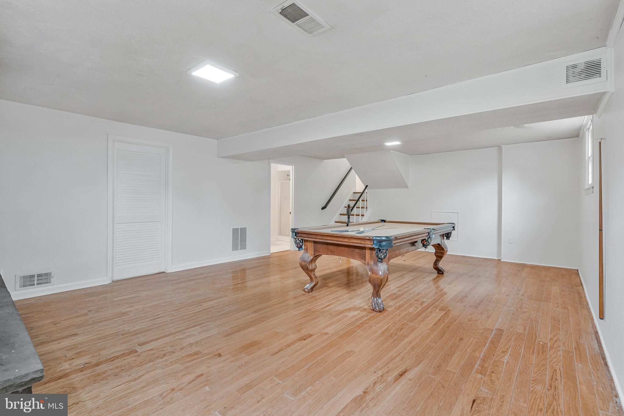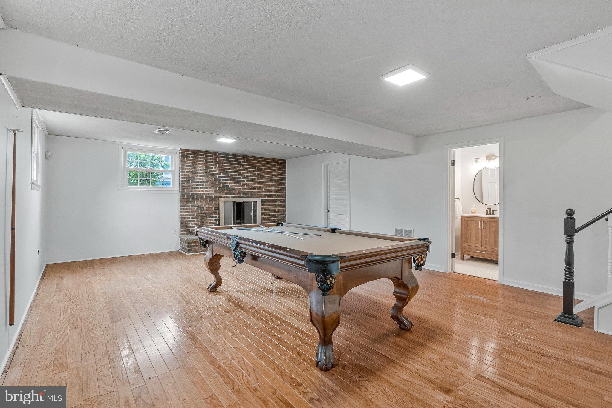 The spacious lower level includes a large recreation room with a cozy gas fireplace, hardwood floors, an updated full bath, and walkout access to a level backyard, ideal for gatherings or quiet evenings outside.